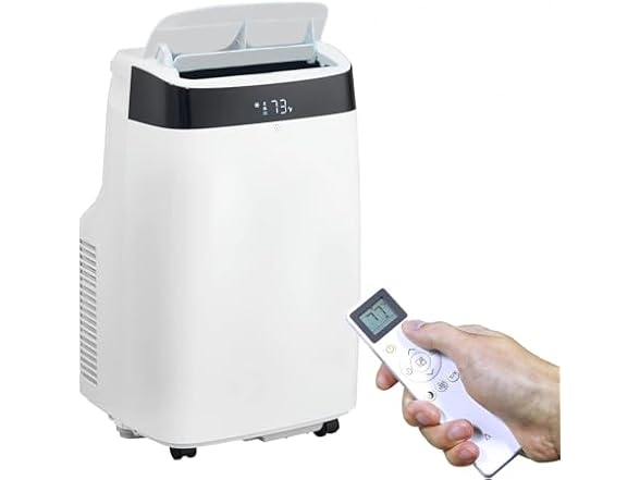 - (1) HobbyField 12,000 BTU Portable Air Conditioner | 3-in-1 Unit with Dehumidifier & Fan | Cools Rooms Up to 550 Sq. Ft. | Remote Control | Ultra-Quiet Operation | 24-Hour Programmable Timer | Sleek White Cover