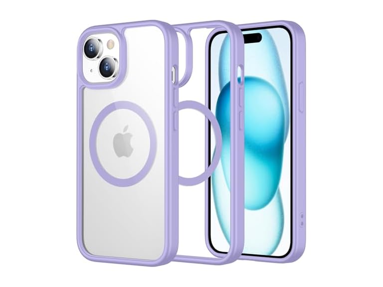 - (1) WAVELIFE 2025 New Magnetic for iPhone 15 Case 6.1-Inch,[Compatible with MagSafe] Shockproof Phone Bumper Cover Slim Anti-Scratch Clear Back (Purple)
