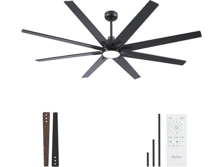 - 3 Downrod Options: This big ceiling fan is perfectly tailored to your ceiling height! We offer 2 downrod sizes: 6 inches, 12 inches and 24 inches. With 8 fan blades, the big ceiling fan offers a cost-effective and eye-catching solution, replacing the need for multiple smaller ceiling fans. Ideal for living room, garage, barn, or covered patio.