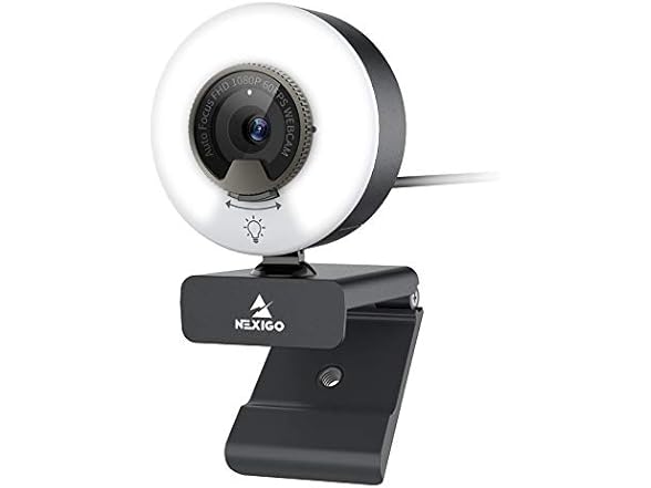 NexiGo N960E 1080p 60FPS Webcam with Light, Software Included, Fast AutoFocus, Built-in Privacy Cover, USB Web Camera, Dual Stereo Microphone, for Zoom Meeting Skype Teams Twitch