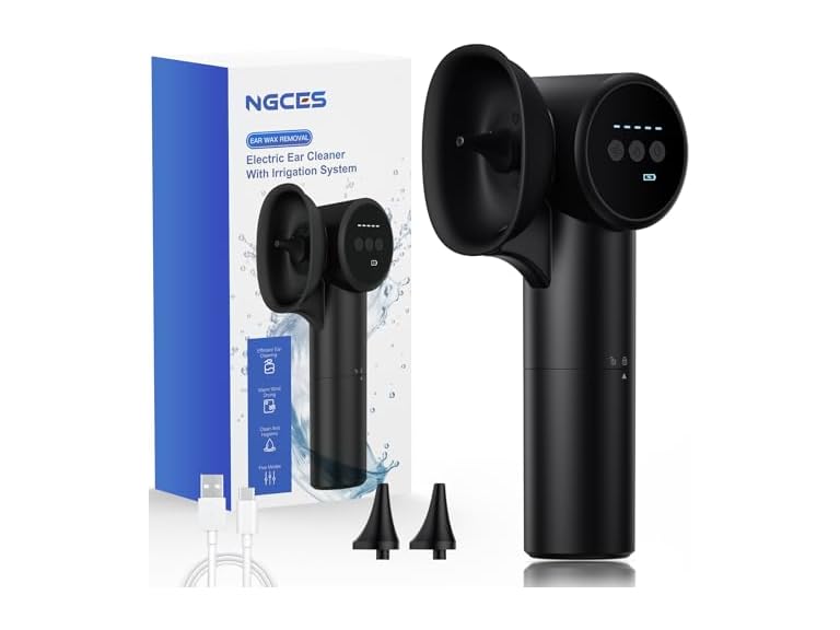 - Waterproof & Convenient Ear Flushing Kit: The NGCES ear cleaner features IPX7 waterproof, safe for use in the shower. With a higher rating than IPX5, keeping devices intact even with accidental water splashes. This rechargeable ear wax removal kit includes 1 ear wax removal, 2 spray nozzle, 1 instructions, and a USB charging cord.