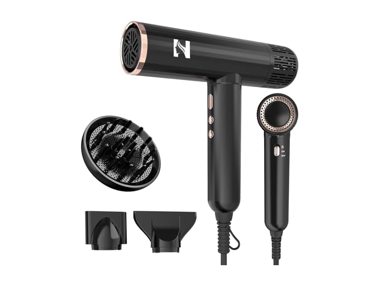 - Ultra-Fast Drying with a Brushless Motor:The Nicebay hair dryer runs on an advanced 1600W High-Speed brushless motor—this thing cranks out an impressive 110,000 RPM, pushing out a high-speed airflow of 23 m/s. Unlike old-school hair dryer, this design cuts drying time by 2/3 and SAVE TIME on your busy mornings and post-workout. In addition, brushless technology brings it less noise and LONGER LIFESPAN.
