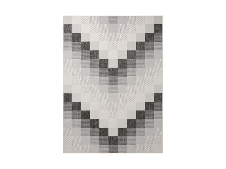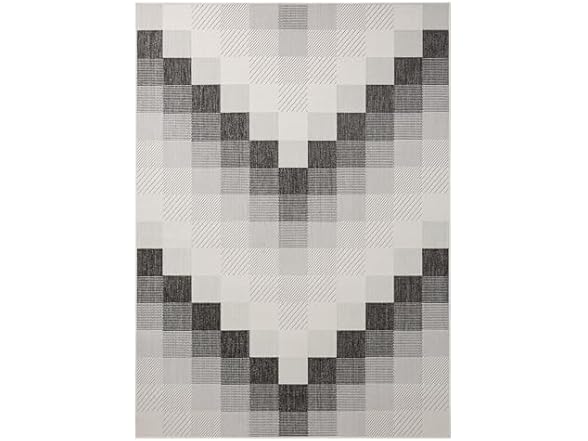 - (1) Nicole Miller New York Patio Country Ombre Chevron Indoor Outdoor Area Rug, UV Fade Resistant, Low Pile, Black/Cream, 7'9"x10'2"