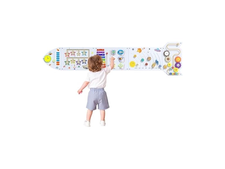 - MONTESSORI WALL SENSORY BOARD: Follows Montessori principles to help kids develop motor skills, hand-eye coordination, language, recognition, spatial understanding, counting, and musical awareness, enhancing social, cognitive, and emotional skills