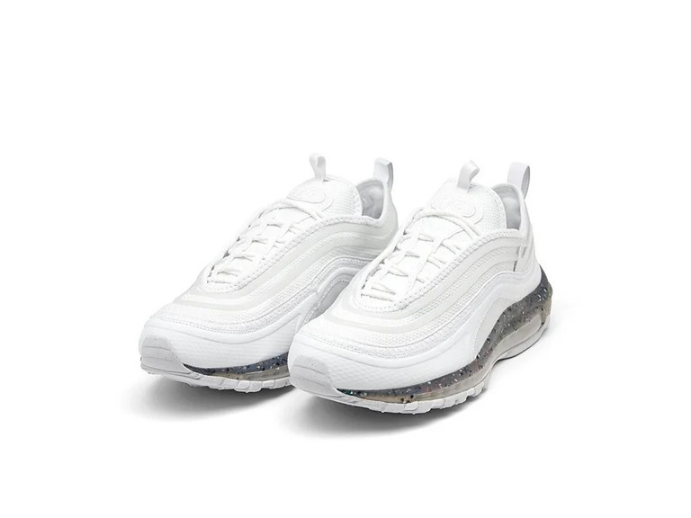 - This sneaker blends a sleek, modern upper with a full-length visible Air unit for a standout look rooted in both style and comfort. The design features a wave-patterned white upper, a contrasting black Swoosh, and a translucent speckled midsole that gives it a futuristic, sustainability-inspired aesthetic. Lightweight materials and a slip-on construction make it practical for everyday wear while maintaining a premium feel.
