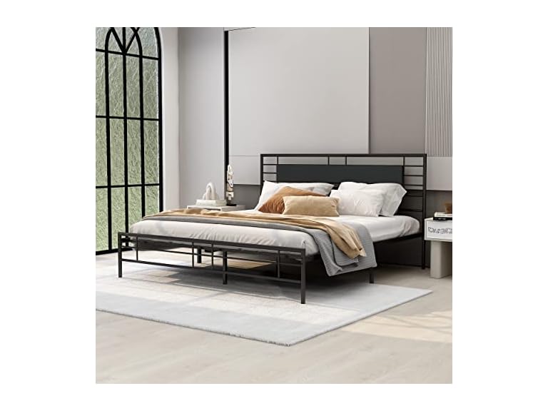 - (1) NNV Metal King Size Platform Bed Frame with Headboard and Footboard Under Storage Steel Slat Size Mattress Foundation Black