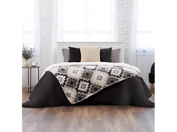 - (1) Northwest Ashford Home Cozy Silk Touch Ribbed Throw Blanket with Sherpa, Nadira Ikat 60 x 80 inches
