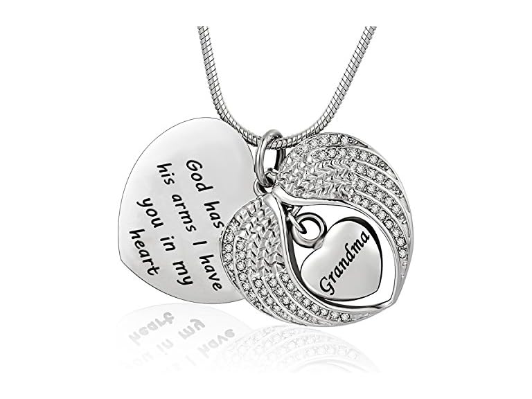 - (1) Norya God has you in his arms with Angel Wing Diamond Cremation Jewelry Keepsake Memorial Urn Necklace(Grandma)