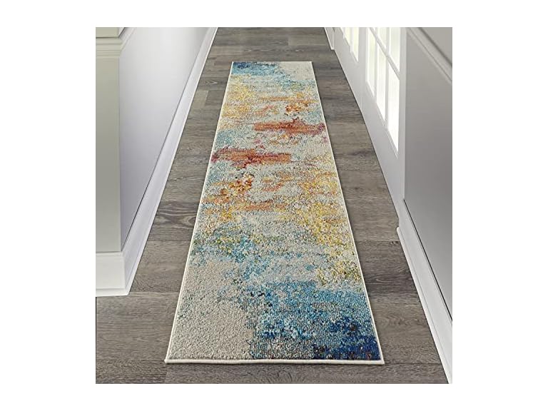 - (1) Nourison Home Celestial Sealife 2' x 6' Area Rug - Easy Clean, Non Shedding, Bed Room, Living Room, Dining Room, Kitchen (6' Runner)