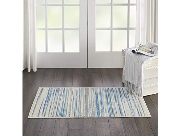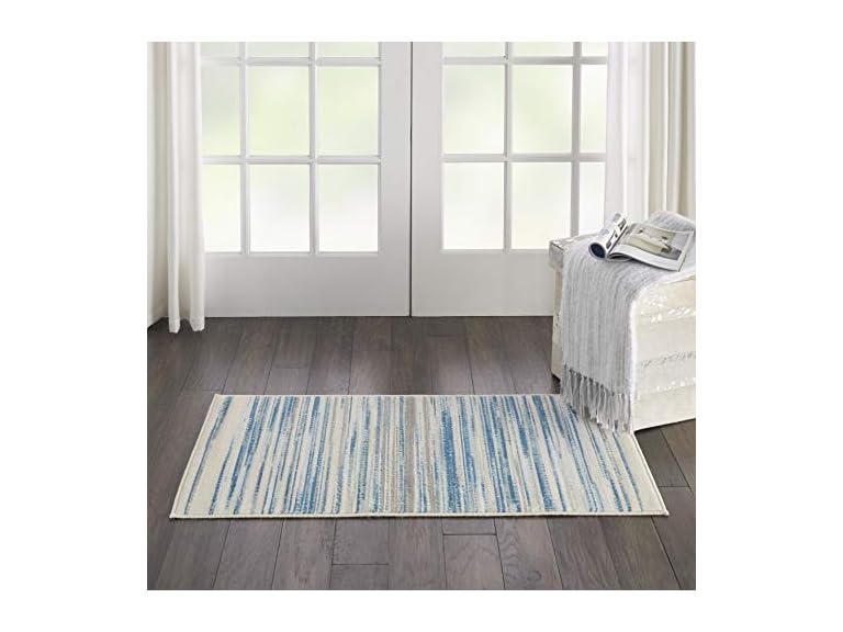 - (1) Nourison Home Jubilant Blue 2' x 4' Area Rug - Easy Clean, Non Shedding, Bed Room, Living Room, Dining Room, Kitchen (2' x 4')