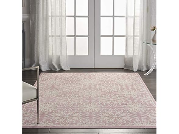 - (1) Nourison Home Jubilant Floral Ivory/Pink 4' x 6' Area-Rug, Easy-Cleaning, Non Shedding, Bed Room, Living Room, Dining Room, Kitchen (4x6)