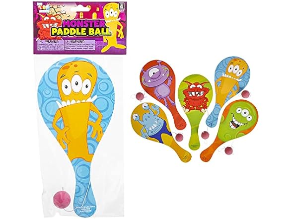 - Monstrous mayhem! this collection of paddle ball sets features a variety of Monster designs. Each piece in polybag with printed header.