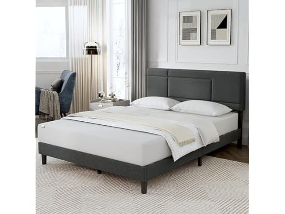 - Stylish and Comfortable: The queen size bed frame with headboard crafted minimalist design seamlessly cfrom premium linen fabric, featuring foam padding for a comfortable touch. With clean, sleek lines, the omplements any bedroom decor, adding a touch of elegance and sophistication to your space.