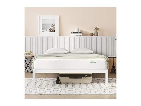 - (1) Novilla Full Size Bed Frame, Metal Platform Bed Frame, Heavy Duty, No Box Spring Needed, Wood Slat Support, Easy Assembly, White
