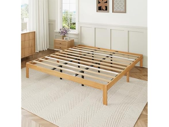 - (1) Novilla 12 Inch King Bed Frame, Classic Solid Wooden King Size Platform Bed Frame, Sturdy Wood Slat Support, No Box Spring Needed, Easy Assembly, Natural Grain Wood