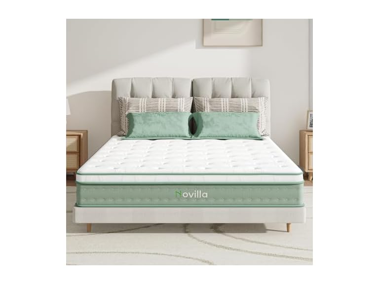 - (1) Novilla Queen Size Mattress, 10 Inch Hybrid Mattress in a Box, Foam with Individual Pocket Coils for Quality Sleep, Pillow Top Queen Mattresses with Quilted Cover, Release Pressure