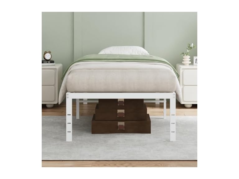 - (1) Novilla Twin Bed Frame, Metal Platform Bed Frame Twin Size, Storage Space Under Bed, No Box Spring Needed, Strong Wood Slats Support, Easy Assembly -