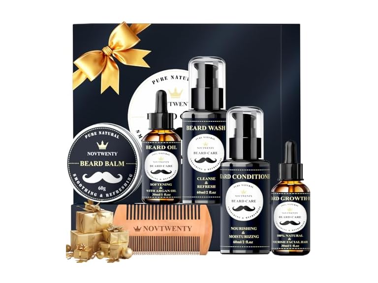- (1) NOVTWENTY NO-BC01-7 7 in 1 Beard Care kit for men Black