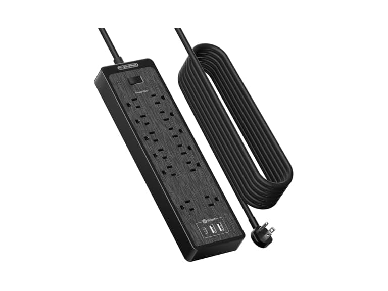 - (1) NTONPOWER 25 Ft Extension Cord Flat Plug, 12 Outlets(2 Widely Space) 3 USB with 2100J Surge Protector Power Strip, Overload Protection, 1875W/15A, Wall Mount for Home Office, Workbench or Garage,Black