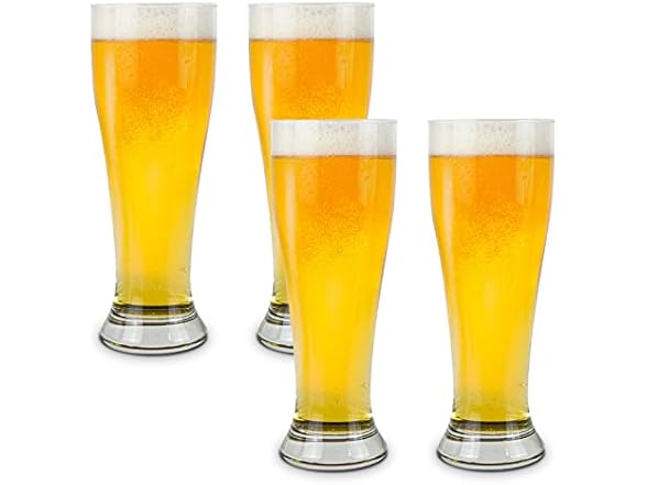 - PILSNER BEER GLASSES DRINKING SET - The Brimley beer glass set lets you enjoy beer at it's best. Tall, slim, and slightly wider at the mouth, these glasses showcase the sparkle, clarity, and bubbles of pilsners and other lighter beers. The shape also helps retain a beer’s head, keeping volatile aromatics locked under your nose.