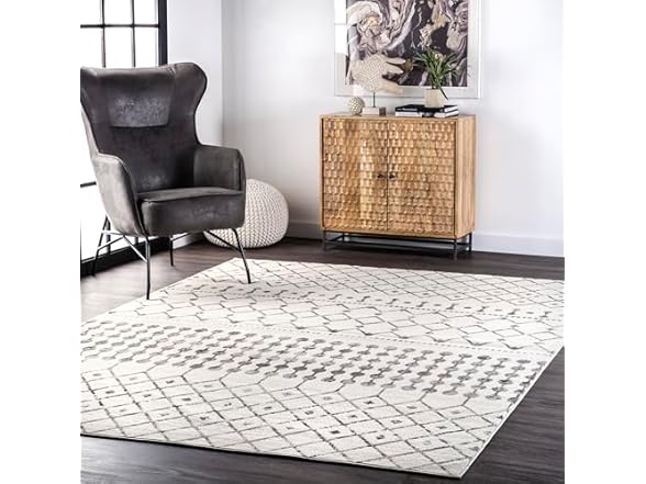 - (1) nuLOOM 5' x 8' Indoor Performance Area Rug, Stain-Resistant, Pet and Kid Friendly, Durable, High-Traffic, Zola ivory/grey | Pet and Kid Friendly, Stain-Resistant, Durable