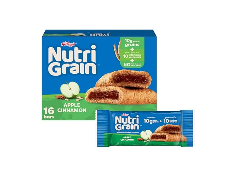 - (1) Nutri-Grain Breakfast Bars, Made with 10g Whole Grains, Snack Bars, Apple Cinnamon, 20.8oz Box (16 Count)