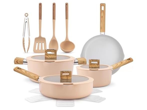 - STYLISH, STAIN-RESISTANT DESIGN – Brighten your kitchen with this ceramic cookware in a sleek pink finish. Stain-resistant and dishwasher safe, it stays vibrant over time. Pan protectors help maintain its scratch-free surface, keeping it looking new.