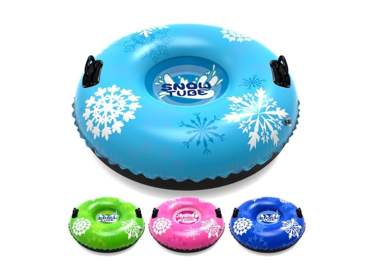 - ❄【Value 4 Colorful Snow Tubes】This package includes 4 snow sleds with nice snowflake prints in healthy paints; The sleds are loved by children and suitable for kids and adults. Perfect for the whole family and multi-children families to reduce conflicts caused by competition. It’s always more pleasant to have a race with sisters, brothers, and kids than sledding alone. Come and enjoy skiing time with your family and friends!