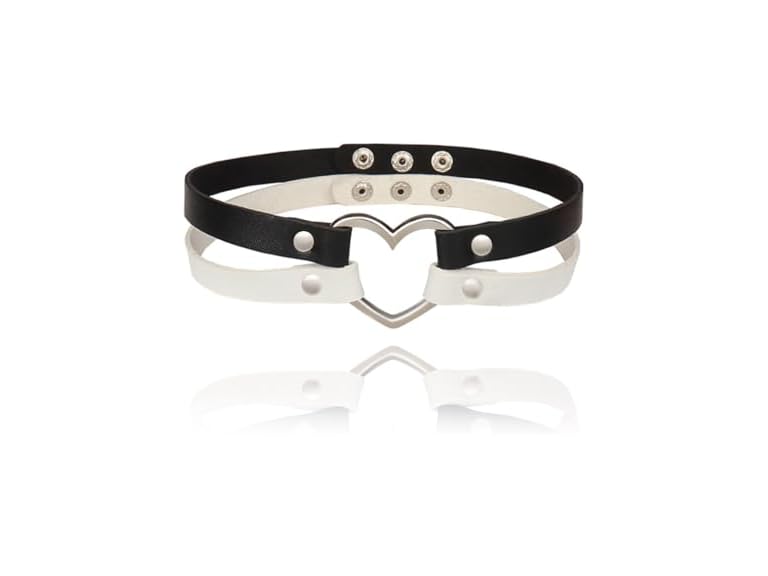- (1) Obmyec Black Leather Choker Punk Short Collar Gothic 2-tier Circle Rivet Necklace Soft PU Leather Short Neck Accessories for Women (Black-1)