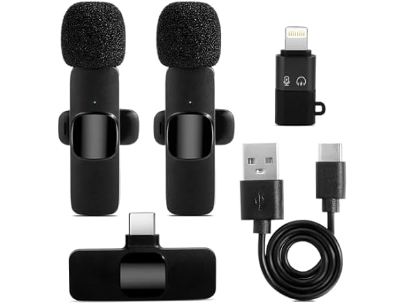 - (1) Ocdonor Wireless Lavalier Microphone 2-Pack Type C and iOS Adapter, Noise Cancelling Mini Microphone for iPhone/iPad/Android Devices, Video Recording Tiktok Live, YouTube, Interviews, Vlogs