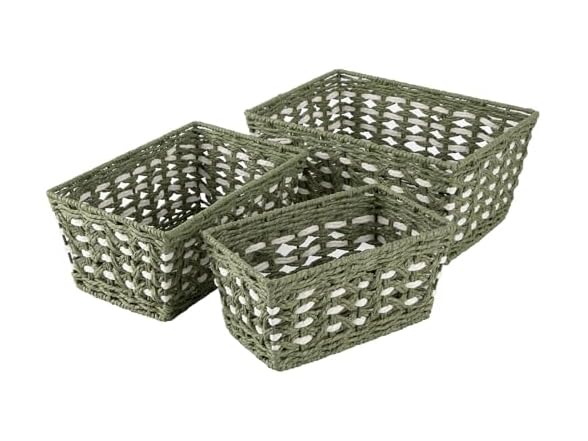 - (1) OIAHOMY Wicker Storage Baskets, Green & White, Set of 3
