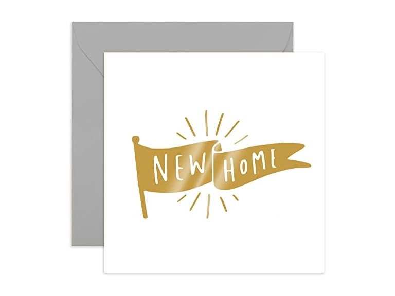 - (1) Old English Co. Housewarming Card for Friends and Family - Gold Foil New Home Flag Card - New House, Apartment, Pad Card for Couple - For Men and Women | Blank Inside & Envelope Included