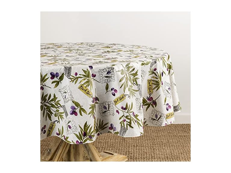 - (1) Elrene Home Fashions Montalcino Italian Olive Branches Water- and Stain-Resistant Vinyl Tablecloth with Flannel Backing, 70 Inches X 70 Inches, Round