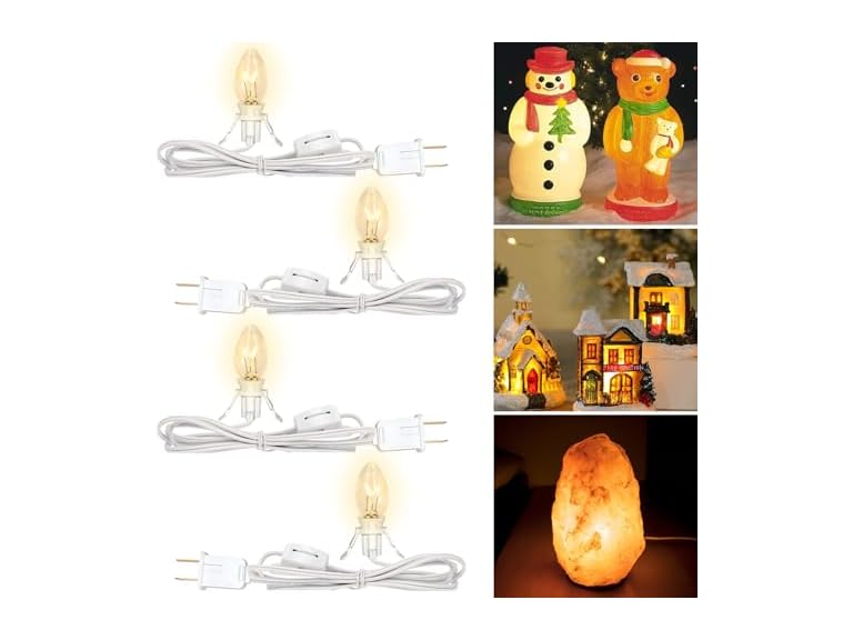 - (1) Olixmlya 4 Pack Accessory Cord with Light Bulb, 6Ft Accessory Cord with C7 Bulb Village Light Bulbs with On/Off Switch Plugs C7 Village Light Cord for Christmas Craft House Village Salt Lamp Decor
