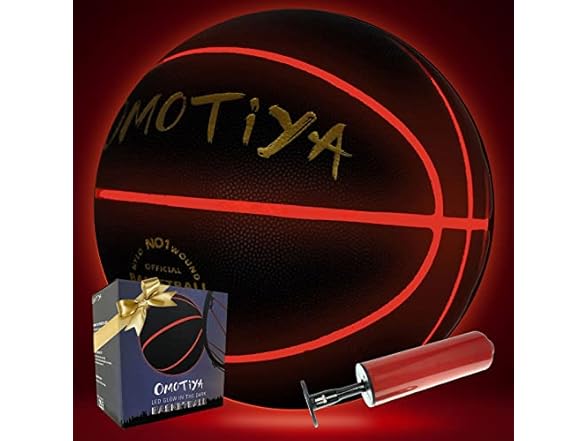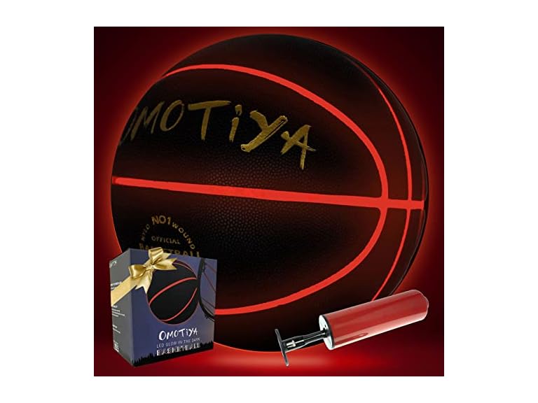 - (1) OMOTIYA Glow in The Dark Basketball, LED Light Up Basketball, Night Glowing Ball, Cool Sports Gear 8-12 Year Old, Toy Basketball Gifts Ideas & Games for Age 8, 9, 10, 11, 12, 13+ Kid Teens Boys Girls
