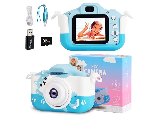 - OMOTIYA Kids Camera, 1080P HD Digital Video Camcorder Camera/Upgrade Selfie Camera with Dog Soft Silicone Cover, for Boys/Girls Age 3-12, Birthday Gifts with 32GB TF Card Blue
