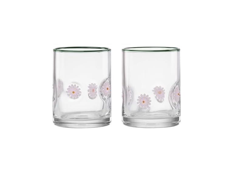 - Oneida Glassware, 24 Seven First Bloom Flower, Set of 2, 12-Ounce Capacity, Made of Glass, Dishwasher Safe Tumbler, Drinking Glasses Set, Home and Kitchen, Clear Glasses, Glass Cups (Clear, 2 Pieces)