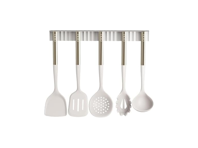 - 【Stylish & Gift-Ready】A must-have 5-piece utensil set with 1 magnetic stand. White silicone heads and gold stainless steel handles add elegance to any kitchen—an ideal gift for weddings, holidays, and housewarming parties.