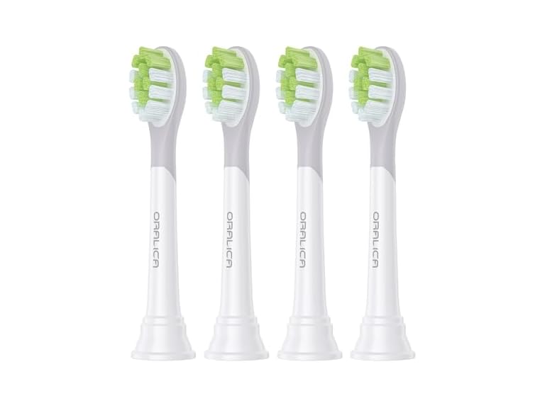 - Oralica - Japanese Brand Whitening Replacement Toothbrush Heads, Compatible with Philips Sonicare Click-on Handles, 4 Pack, Medium, with Tongue Cleaner (CA668, White)