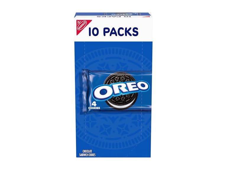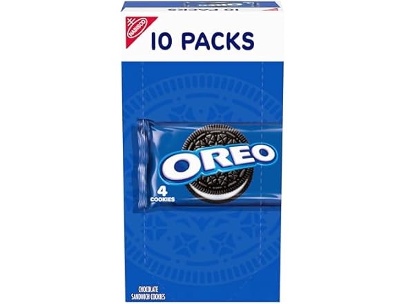 - One box of 10 snack packs, 4 cookies each, of OREO Chocolate Sandwich Cookies, 40 total cookies (packaging may vary)
