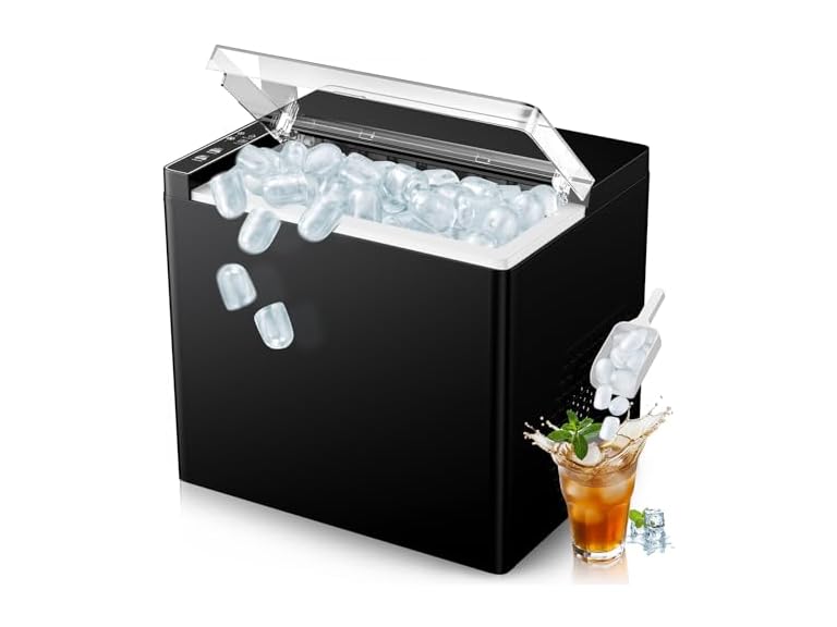 - 【EASY TO CLEAN FOR OPTIMAL HYGIENE】Our simple manual cleaning process helps maintain a fresh environment for ice production. This ice maker includes a handy ice scoop and detachable ice basket, designed for straightforward maintenance. The user-friendly cleaning design supports effective upkeep, helping keep your ice maker ready for daily use.