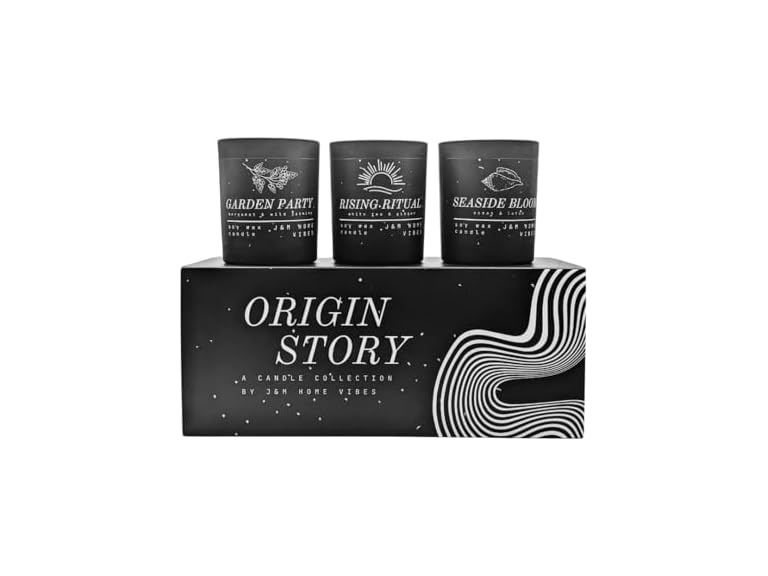- (1) J&M Home Vibes Origin Story: Luxury Scented Candle Gift Set for Home 3-Pack Premium Soy Wax Candles