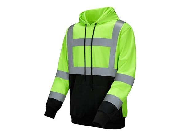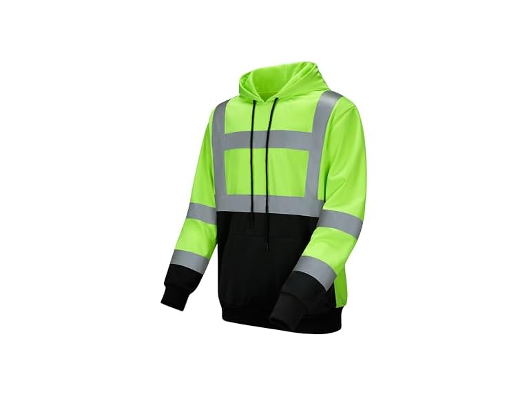 - (1) Ousafeve Men's ANSI Class 3 High Visibility Reflective Safety Hi Vis Hoodie with Black Bottom for Work (Lime, Small)