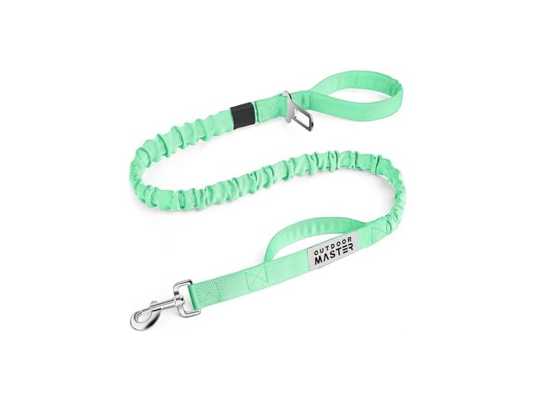 - (1) OutdoorMaster Bungee Dog Leash, Heavy Duty Dog Leash with Shock Absorption, 2 Padded Handles Training Leash, Improved Dog Safety and Comfort - Green Upgraded, 4 FT