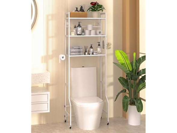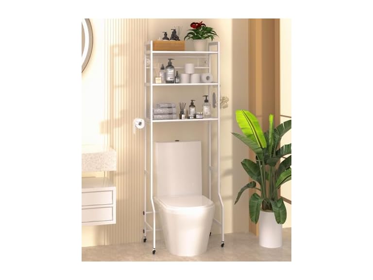 - Over The Toilet Storage, 3-Tier Over Toilet Organizer Rack with Paper Holder Universal Wheel,Freestanding Above Toilet Shelf for Bathroom Restroom, Laundry,White