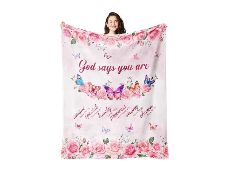 - Inspirational Christian Gift for Women: Celebrate faith and spirituality with this beautiful Christian Gift Blanket. Perfect for birthdays, holidays, or simply as a heartfelt gesture, this Religious Gift features uplifting Bible Verses and Spiritual Scriptures, making it a meaningful present for women of faith. Whether for Catholic Gifts or general Inspirational Gifts, this throw blanket (60" x 50") is ideal for any occasion.