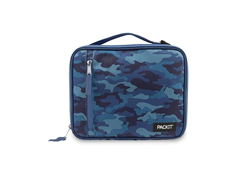 - (1) PackIt Freezable Classic Lunch Box, Blue Camo, Built with ECOFREEZE Technology, Collapsible, Reusable, Zip Closure With Zip Front Pocket and Buckle Handle, Designed for Lunches