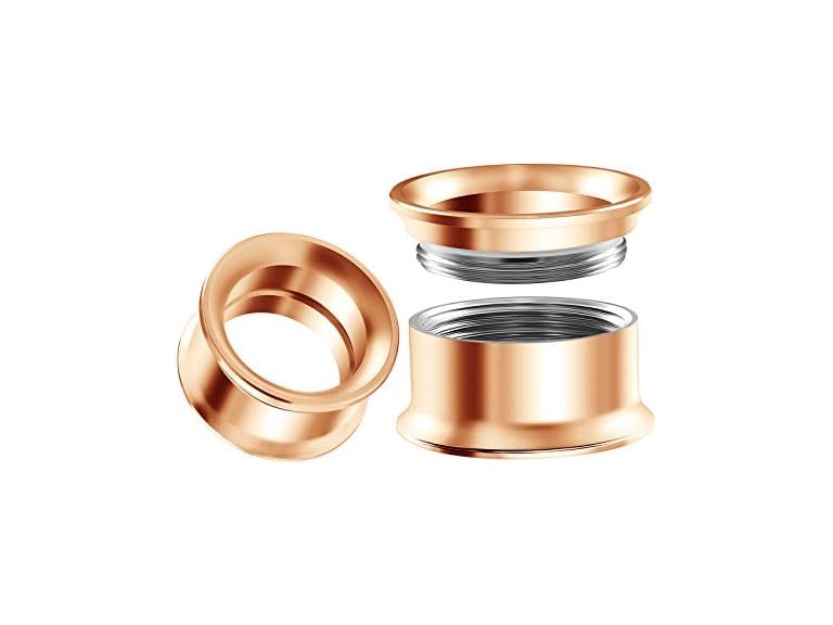 - YOU RECEIVE A pair of 5/8 inch Gauge 16mm Rose Anodized Surgical Steel Tunnels Double Flare (PVD plated internally threaded).