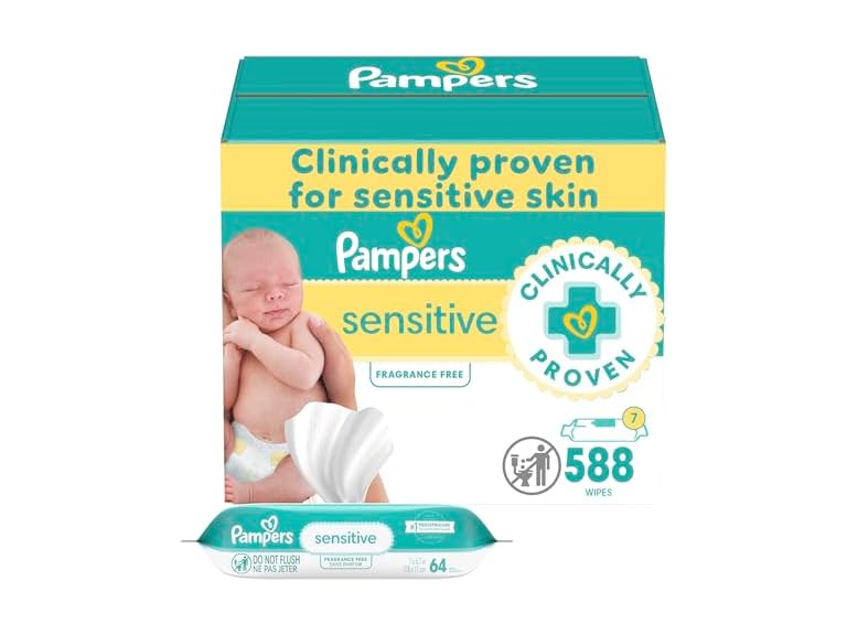 Clinically proven to protect your little one’s sensitive skin, Pampers Sensitive baby wipes are extra thick and soft for a gentle clean. They are the #1 choice of hospitals, based on hospital sales data, and they are Skin Health Alliance Dermatologist approved. Pampers Sensitive baby wipes are perfect for caring for your newborn’s sensitive skin in the kindest possible way because they are milder than a washcloth and water and their unique lotion helps maintain skin’s natural pH better vs. the leading super-premium baby wipe. Pampers Sensitive baby wipes are hypoallergenic and free of alcohol (no ethanol), fragrance, parabens, and latex (no natural rubber).