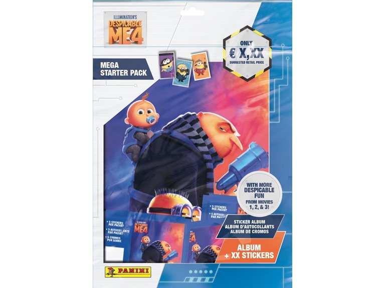 - (1) Panini Despicable Me 4 Mega Starter Pack, 1 Sticker Album + 25 Stickers